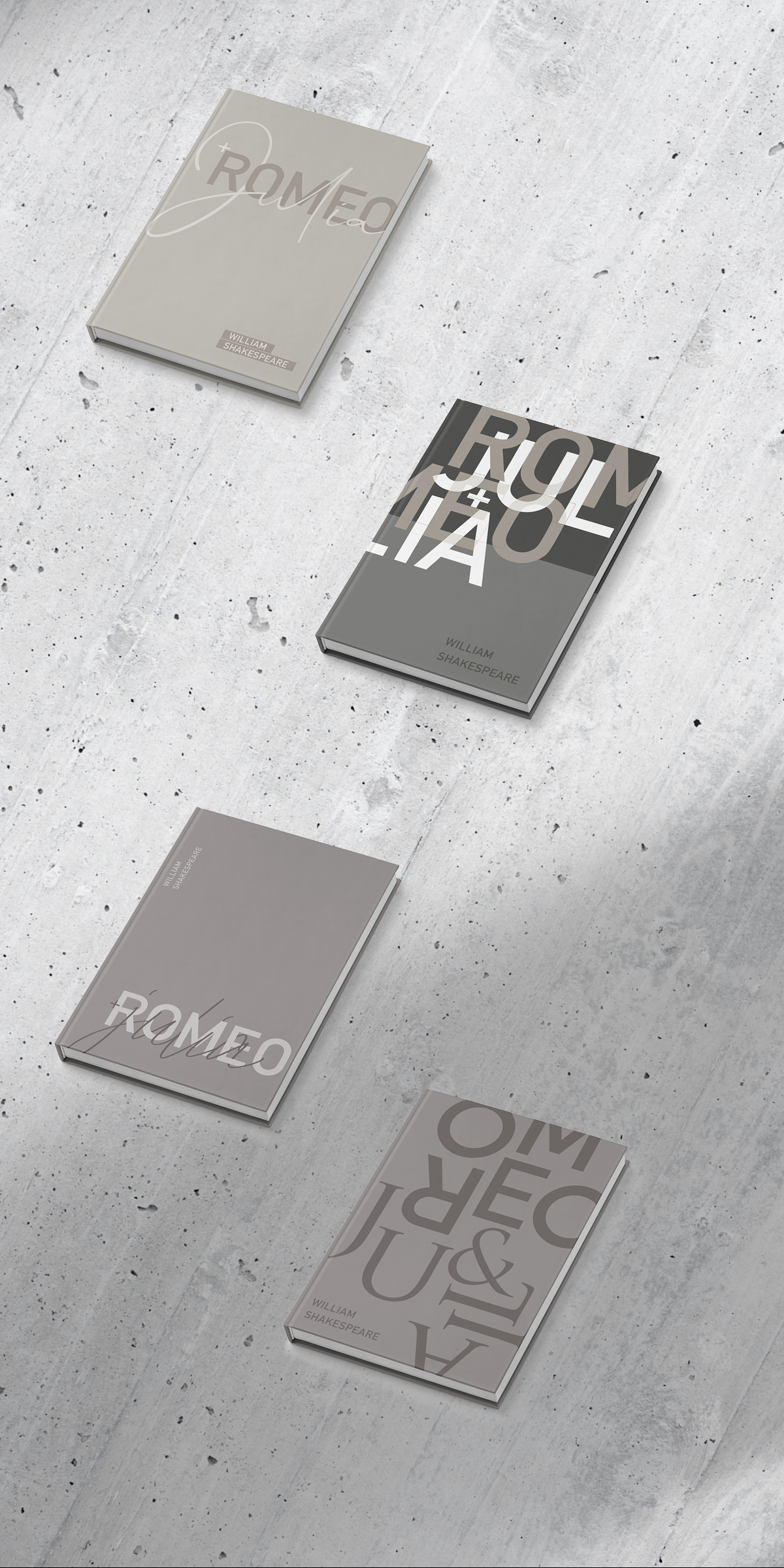 Die Aufgabe war eine typografische Umsetzung des Buchtitels «Romeo und Julia» für die Umschlaggestaltung eines Taschenbuches.